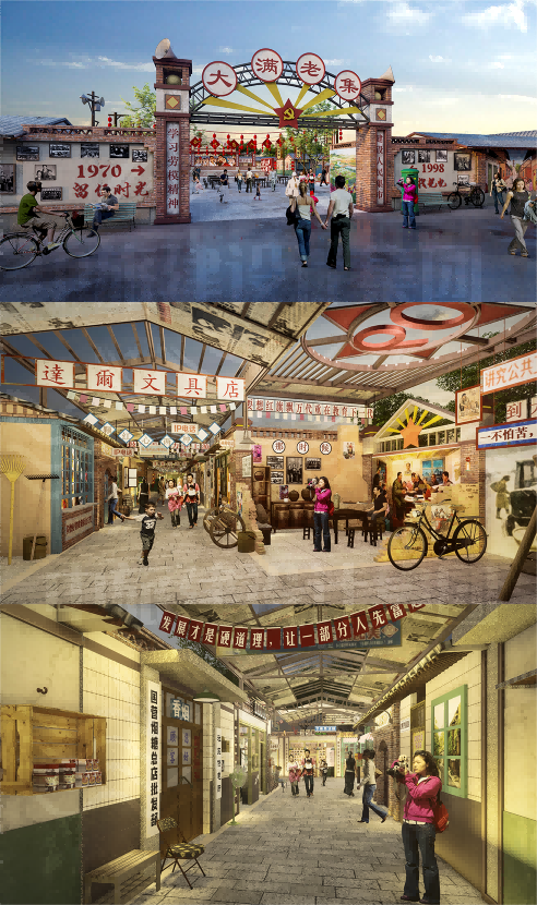 大满“老集”建设项日依托红西路军中共甘州中心县委旧址红色资源和现有农贸市场,以"小甘州”记忆为切点,建设占地面积2.49万平方米的情景式主题集市街区。