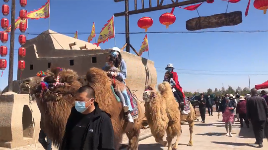 2022年“五一”小长假期间,甘肃省张掖市甘州区甘浚镇“西遇·宿集”特色乡村游景点内人来人往。木门窗格、檐廊露台石板路、唱秦腔、说宝卷、品大碗酒、睡火炕.....吸引众多游客前来感受“大漠孤烟直”的西域风情,体验“龙门飞甲”般客栈民宿。