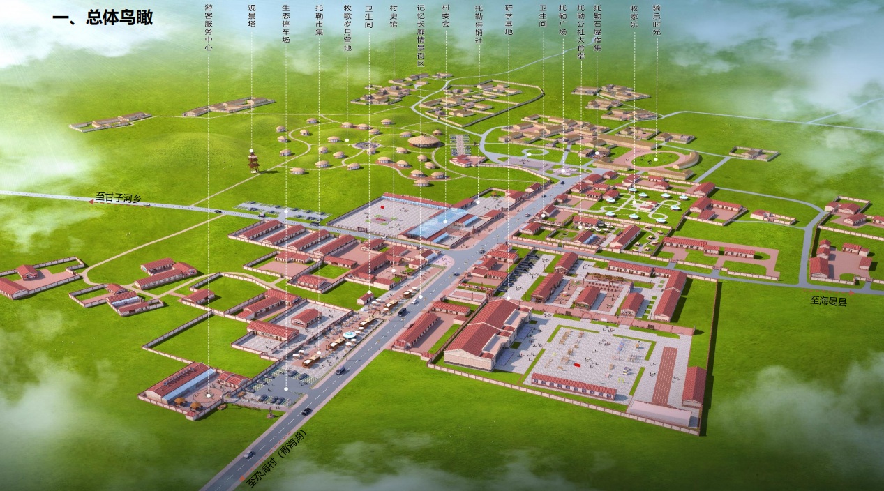 本项目紧抓乡村全面振兴和审美养心生命游的发展机遇,顺应青海省打造国际生态旅游目的地、创建青海湖国家公园及红色海晏的发展大势,以两弹一星、国营221厂等红色资源为引领,依托极具年代感、穿越感、旧时光、岁月痕迹遍地的游牧自然村落,以年代记忆为切入点,以“再现年代记忆·感悟时光托勒”为理念,承牧续绿出新,传承牧村托勒、延续生态托勒、升级托勒公社,创新产品内容,差异化打造“年代怀旧主题网红牧村”,发展国家公园入口经济,实现从老牌牧业村向新生旅游村的转变。最终打造集托勒年代记忆展示、年代记忆消费、牧村民俗互动、牧村沉浸住宿等功能于一体的:怀旧主题型枚区场景生活体验地。