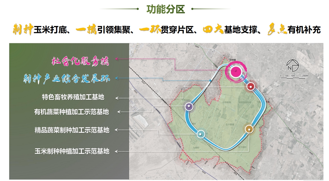 紧抓国家实施种业振兴的时代机遇,结合甘肃现代寒旱农业发展趋势,发挥甘肃张掖国家级玉米制种基地的产业基础,以培育全国现代种业发展高地为目标,依托沙井镇作为张掖制种玉米生产最佳优势区的产业优势,以玉米制种为主,辅以蔬菜制种,以节水农业、设施农业、生态有机循环农业为特点,按照联动产业、联建设施、联聚要素、联接技术、联结龙头、联培机制和联享资源的“七联”方式,形成特色鲜明、要素集聚、链条完善、机制创新的现代种业发展路径擦亮甘肃农业大省“甘味”农产品和“金张掖种子”金字招牌辐射带动区域乡村振兴及和美乡村建设,最终打造以现代种业全产业链为核心的张掖市:全国现代种业发展新高地先行示范区