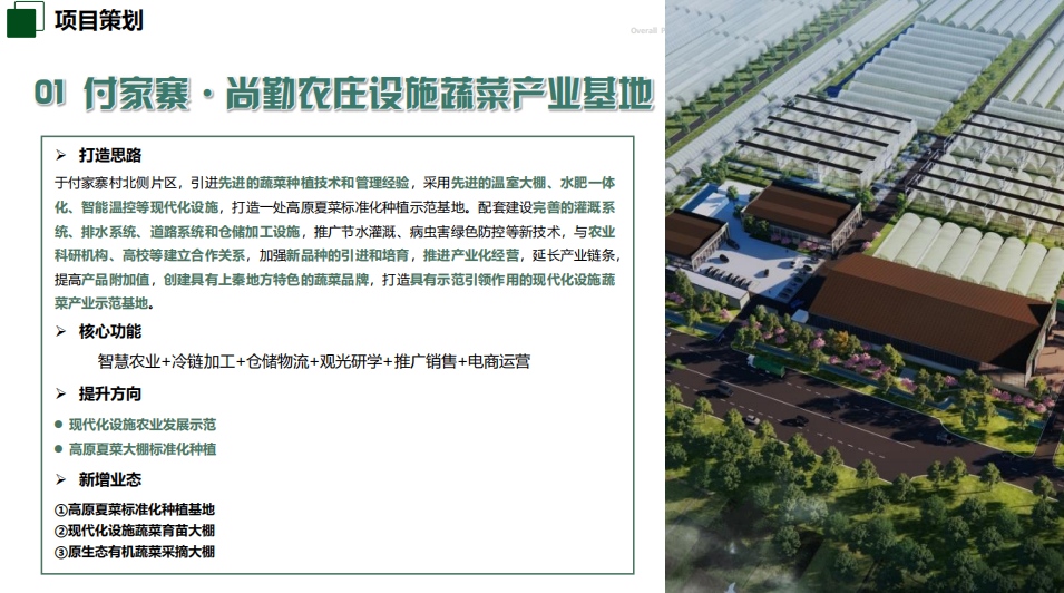 依托城郊核心区位优势,依城兴镇、借城发展。以服务城市、融入城市为目的,依托项目地蔬菜产业基底,在乡村振兴、农业转型的时代契机下,明确产业融合发展目标与定位,大力发展农庄经济,将农村闲置住房进行个性化改造,科技赋能提升农庄经济提质增效,通过打造知名共享农庄、共享庭院模式,实现农庄品牌化发展,助推农文旅产业深度融合,构建特色乡村旅游品牌,逐步实施打造具有示范效应的数字乡村新标杆。加强乡村人居环境整治,提升产业配套升级建设,推动农业数字化转型,推广智慧农业和农业物联网发展;